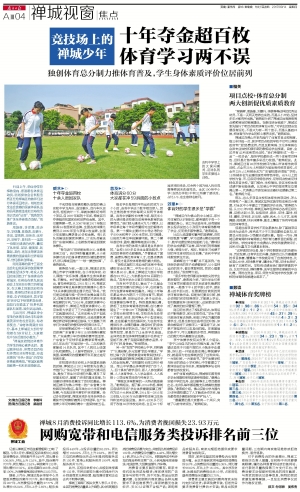 禅城区在佛山市率先推行了体育项目点校制度,每三年评选一次,获评项目点校的学校不仅可以得到政府专门的经费支持,而且区教育局、文化体育局也会派专业体校和俱乐部的教练给学生授课。目前,全区共有42所体育项目点校,“我们希望形成‘一校一品’‘一校多品’,每所学校都形成一两个体育项目特色,目标是打造丰富多彩活力校园。”谢燕妮说。此外,禅城区还有26所学校被评为佛山市体育传统项目校,占全市28%;5所被评为省体育传统项目校,占全市33%;12所被命名为广东省校园足球推广学校;18所被命名为全国校园足球特色学校。45%以上的学校为省、市、区级足球特色学校、足球网点校或足球特色项目学校。“部门搭台、学校唱戏,我区学校体育成绩不断创造佳绩。比如荣山中学的排球常年位居佛山第一,代表佛山市参加省运会最好成绩拿过第二名。”谢燕妮介绍。