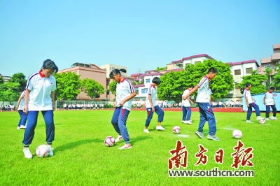 “禅城区体育教育的一大特点就是普及。”谢燕妮说。据了解,2014年起,禅城区连续两年将“学生体质健康保障工程”作为区十大民生实事,2014年—2016年三年投入8500万元改善学校体育卫生条件和运动设备设施。其中,4200多万元用于改造32所学校运动场,全区62个标准足球田径场,仅余两个因为纳入拆迁范围等原因未改造完毕。全区100所中小学(含民办学校)中有32所建了游泳池,占比1/3,在全省排名前列。
