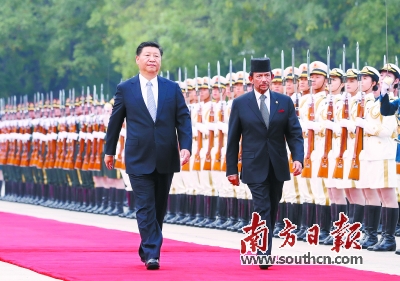 9月13日,习近平同文莱苏丹哈桑纳尔会谈前,在人民大会堂东门外广场为哈桑纳尔举行欢迎仪式。 新华社发 |