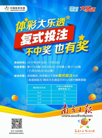 金秋送爽的9月,广东彩民又迎来大利好:“大乐透复式投注,不中奖也有奖”活动即将开启。为感谢广大彩民长期以来对中国体育彩票“超级大乐透”的支持,广东体彩年度重头活动“大乐透复式投注,不中奖也有奖”将于今年9月16日至11月29日再度登场!