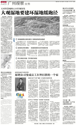 南方日报讯 (记者/刘怀宇)天河智慧城与珠江新城、国际金融城一起,构建成天河区“三区支撑”的三大平台。近日,广州市规委会会议上审议通过了天河智慧城核心区东片区控详规。未来该区域将进一步优化大观湿地周边空间,拆除现状临建,加大湿地的开敞、通达效果并建设环湿地缓跑道;与此同时,新建建筑要根据周边布局进行填补完善,建筑色彩需与周边协调。