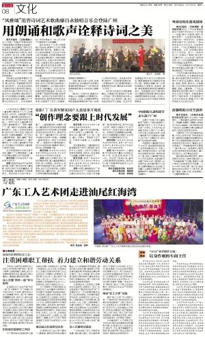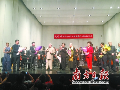 南方日报讯 (记者/周豫)9月15日晚,“风雅颂”范曾诗词艺术歌曲廖昌永独唱音乐会登陆广州大剧院,音乐会集结了国内文艺界诸多艺术家献艺,音乐会曲目以书法家范曾诗词作为歌词,徐沛东、赵季平、孟卫东、印青、关峡等作曲家作曲,由著名男中音歌唱家廖昌永演唱。这也是廖昌永时隔十年再来广州举行专场音乐会。音乐会还邀请了乔榛、瞿弦和、温玉娟、徐敏等现场朗诵,广州交响乐团担任演奏,众多大家联手为羊城观众奉上一出传统与现代交融的新颖演出。