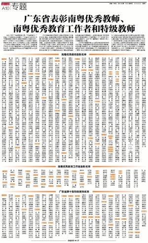 广东省表彰南粤优秀教师、南粤优秀教育工作者和特级教师
