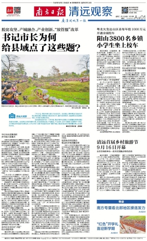 全市各地将举办一系列农旅融合特色活动南方日报讯 (记者/赫鹏翀)9月3日,记者从新闻发布会获悉,“上山下海·广东人游乡村”旅游季(清远主会场)活动暨清远市首届乡村旅游节将于9月16日下午,在英德九龙小镇景区开幕。此次活动由省旅游局、清远市政府主办,市旅游局、市农业局联合承办,旨在促进乡村振兴战略实施,实现广东乡村“产业兴旺、生态宜居、乡风文明、治理有效、生活富裕”,全面展示农旅融合发展成果。