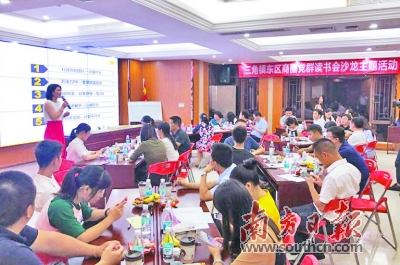 8月31日晚,三角镇东区商圈举办首期读书会沙龙,30多名企业员工参加,发起话题并进行分组讨论。受访者供图 |