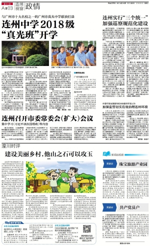 备受市民期待的连州中学2018级“真光班”9月2日开班了。“真光班”由连州中学与广州市十大名校之一的广州市真光中学联袂打造,旨在增强连州教育整体实力,推动连州教育协调发展。“真光班”的各科教师由真光中学和连州中学选派优秀教师担任,全程跟进学生学习、生活和心理方面的辅导工作。