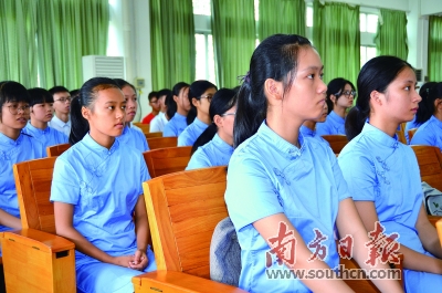 穿着广州市真光中学校服的80名“真光班”同学,引人注目。 |