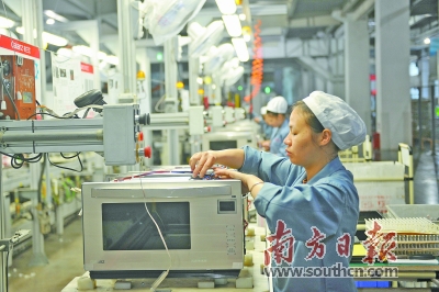 “我们从设计源头保证工人在生产装配产品时可进行‘傻瓜式’操作,以降低复杂工序引发的生产不确定性隐患。”格兰仕微波炉研发技术部结构开发科一科科长廖波说。