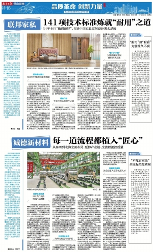 为此,联邦家私共参与了60多项国际、国家、行业与地方标准的制定或修订工作,并推动在企业内部贯彻执行,已形成141项技术标准、133项管理标准和101项工作标准。这60多项标准,相当于近三年家具行业参与制定、修订标准的三分之一以上,在行业中处于领先地位。凭借敏锐的市场触觉与对原创设计、对产品品质的坚持,联邦家私不仅实现产品的“耐看”“耐用”,更打造出中国家具原创设计第一品牌。