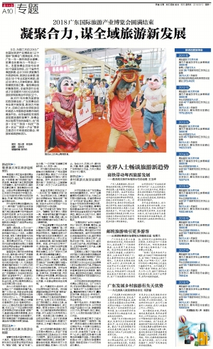 9日,为期三天的2018广东国际旅游产业博览会(以下简称“旅博会”)圆满结束,作为广东一年一度的旅游业盛事,旅博会的影响力一年胜过一年。本届旅博会共吸引全球60个国家及地区、22个省市代表团参展,合计3000多家境内外旅游机构、旅游企业参展;接待近50个专业买家代表团,超过50多万人次参观参会,展览规模居历届之最。借旅博会组织筹备契机,全省旅游行业促成了总金额约1000亿元的旅游投资和贸易合作项目32个。