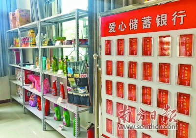 在富荣社区的爱心储蓄“银行”,居民可以通过参与志愿活动兑换积分并以此换取生活用品。 南方日报记者 张迪 摄 |