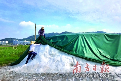 海盐制成后,需用专用的帆布盖住,以防溶化。 |