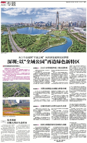 500米可达社区公园,2公里可达城市综合公园,5公里可达森林郊野公园……这些大小不一的公园,在夯实特区生态基石,串联起千万深圳人宜居梦想的同时,也为珠三角乃至国内土地紧张的城市实现更高质量经济发展,提供了一个样本。