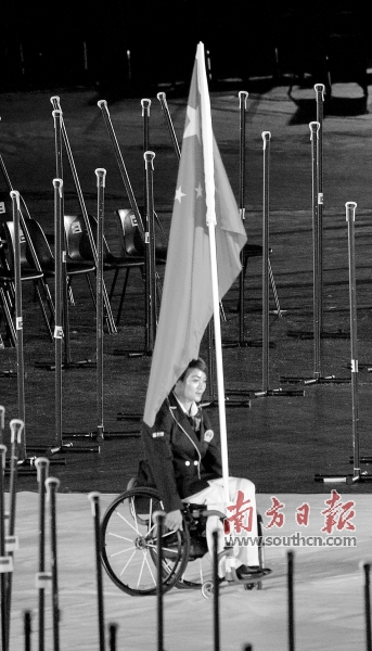 10月6日,第三届亚洲残疾人运动会开幕式在印度尼西亚雅加达举行。本届亚残运设视力、肢体、智力三个残疾类别共18个竞赛大项,中国代表团将参加视力和肢体两个类别的15个大项的比赛。本次中国队派出运动员232人,是中国队境外参加远南运动会和亚残运会运动员人数最多的一届。图为中国代表团旗手邹丽红入场。 新华社发