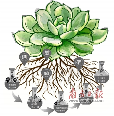 前面提到,重金属离子是同所有的植物养分离子一起被根须吸收进植物体内的,而植物根须的吸收能力是有限的。如果能够让一种对人体无害甚至有益的元素大量进入植物体内,就能够在一定程度上阻止和减少植物对铅镉等重金属元素的吸收。这一次,科研人员找到的“有益元素”是硒。