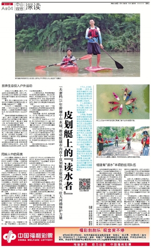 “皮划艇体积小,只要水深超过半米,水道宽度超过1米,皮划艇就能到达。”韦杏婵认为,皮划艇在巡河方面有着独特的优势,可覆盖河道各个“死角”。另外,水上运动者一般都掌握“读水”本领,可通过观察河道水流流向流速等细节,找出在隐藏于水下的排污暗渠等排污源头,巡河更彻底。