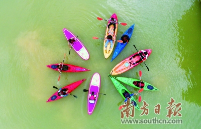 越来越多像廖剑浩这样的水上运动爱好者聚集在一起,为韦杏婵和罗志锋提供了推广水上运动提供了新思路。去年7月,韦杏婵和罗志锋带队完成了中山民间首次团体“水上马拉松”。冒着烈日,12人皮划艇队伍从沙溪镇圣狮河出发,沿河途经西区、石岐、南区、大涌、板芙、横栏等镇区,最终回到沙溪镇,全程38公里,耗时12小时。