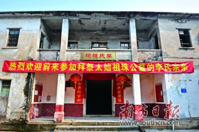 而今的祠堂,在岁月的打磨中,已失去当年的面貌。方方正正的四角楼里摆放着梅州李氏发展的历史资料及梅州李氏太始祖珠公等祖先的牌位。这里依旧是外迁世界各地的梅州李氏后人回乡祭拜祖先之地。