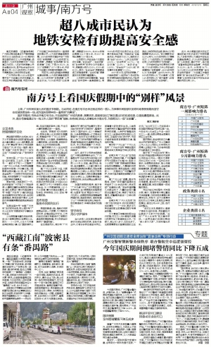 在南方号“广州公安”发布的《国庆节,别样的风景:广州民警国庆节为民服务不松懈》中,连续10个小时的“天眼”视频追踪抓捕徒步抢夺犯罪嫌疑人、为晕倒的市民实施紧急救助、帮助迷路老人寻回家人……正是因为广州民警的守护,市民才能尽情享受假期的欢乐祥和。