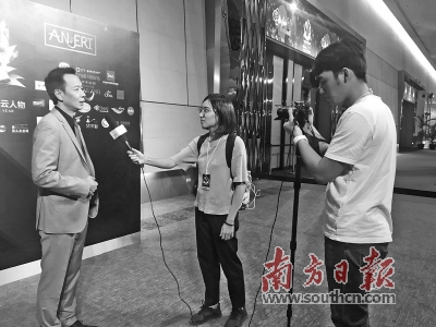 汕头知名主持人许友文在颁奖典礼后接受汕大报道团的采访。受访者供图 |
