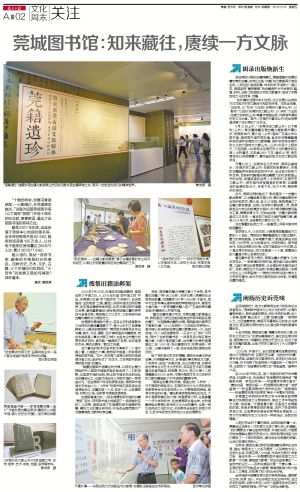 著名藏书家韦力表示,莞图注重乡贤著作,弘传本邦观念,“一家街道级的图书馆,竟然能办到这等规模,又能办得如此像模像样,这也是我所未曾见到过的”。目前,莞图还计划出版《东莞古籍经眼录》《东莞文史论丛》《旧梦留痕——莞城已消失的名物》等本土文史研究著作。地方历史文献的抢救与传承,可谓是任重而道远。