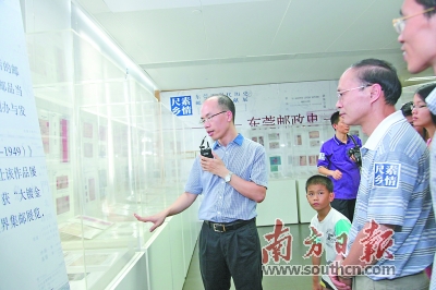 尺素乡情——东莞近现代历史邮品与文献展,收藏家王晓强在给市民导览。受访单位供图 |