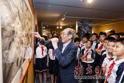 王无邪为孩子们讲解自己的画作。刘中 摄 |