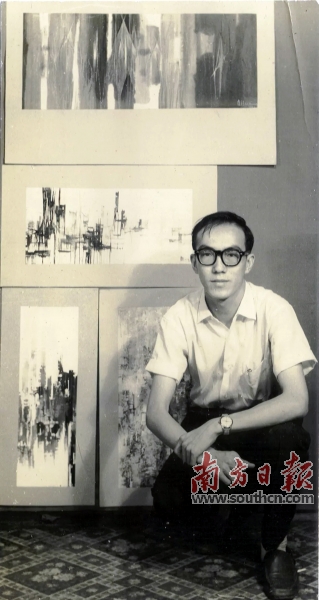 1959年,王无邪在准备个展时与自己的作品合影。 莞城美术馆供图 |