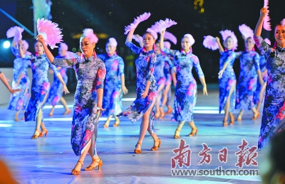 南方日报讯 (见习记者/黄堃媛 记者/周豫)11日晚,“舞动南粤”全国广场舞广东省集中展演在清远举行(见右图,南方日报记者 曾亮超 摄)。来自21个地市的22支代表队伍、共700余名演员同台竞技,包括广州市代表队的《打饼歌》、深圳市代表队的《鸡鸣报吉祥》等精彩演出。
