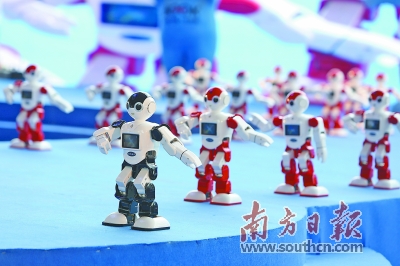 近年来,龙岗区深入实施创新驱动发展战略,着力营造大众创业、万众创新良好氛围。图为深圳书城龙岗城精彩的机器人表演。 |