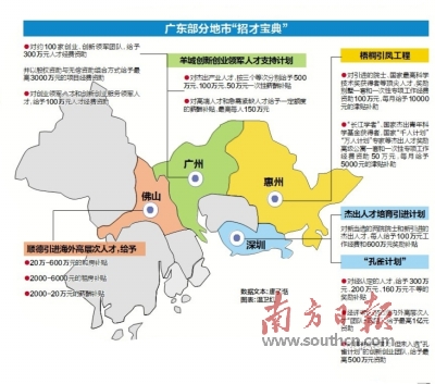 广东省多市也推出了相应措施。广州实施的“广州市人才绿卡制度”,为来穗工作的高端外籍人才解决生活后顾之忧,累计已发放3300张。深圳的“孔雀计划”最高可奖励300万元。佛山对于引进的海外高层次人才,可给予最高达600万元的购房补贴。珠海市则推出了“珠海英才计划”,为不同层次的人才规划了16条举措。
