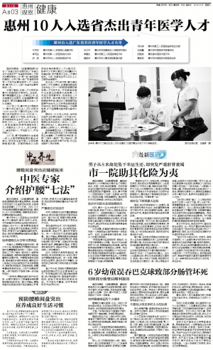 南方日报讯 (记者/廖钰娴)近日,广东省卫生计生委印发《广东省卫生计生委关于广东省医学领军人才和杰出青年医学人才(第一批)遴选结果的通知》,公布了第一批广东省医学领军人才和杰出青年医学人才入选名单,惠州共10人入选广东省杰出青年医学人才。