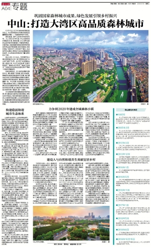 《中山市创建国家森林城市工作方案》出台,提出当年内启动市树评选,力争2018年达到国家森林城市标准并获得国家森林城市称号,力争到2020年打造3块“国字号”金字招牌。