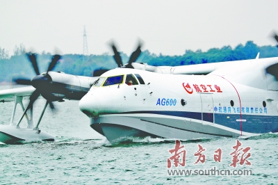 AG600被称为“会飞的船”,可以分别在陆地和水面起降,在广东珠海航空产业园研发设计和总装下线。去年12月,已在珠海金湾机场成功实现陆上首飞。它不仅体积大、载重大,还具有航程远、续航时间长、抗浪能力强的特点,可以在不低于两米海浪的海况执行着水救援任务,达到了同类产品的世界先进水平。