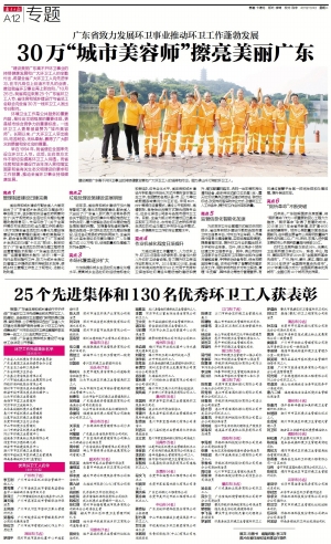 “建设美丽广东离不开环卫事业的持续健康发展和广大环卫工人的辛勤付出,希望全省广大环卫工人向先进学习,在平凡岗位上创造不平凡的业绩,推动我省环卫事业再上新台阶。”10月26日,我省将迎来第25个广东省环卫工人节,省住房和城乡建设厅与省总工会联合向全省30万一线环卫工人发出节日慰问。