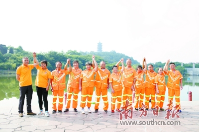 建设美丽广东离不开环卫事业的持续健康发展和广大环卫工人的坚持和付出。图为佛山千灯湖的环卫工人。 |