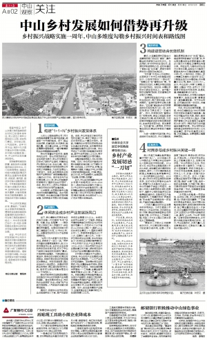 近日,中山市正式印发实施《中山市关于推进乡村振兴战略的实施方案》,提出加快实施百亿现代农业提质增效工程“六百”工程等多项举措和建设目标。借助乡村振兴战略,中山加快探索乡村振兴发展路径,借势推动农村发展再升级。