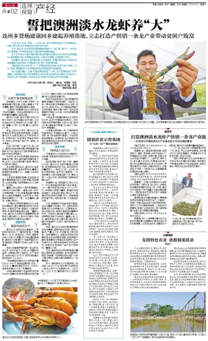 10月以来,连州市德尚澳龙水产发展有限公司订单不断,所产的澳洲淡水龙虾供不应求。 |