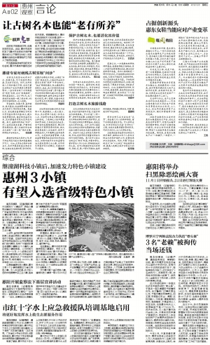 保护古树要发动群众,激发大家的自觉和自信,或许比单纯的法律更有效。正因为古树名木包含了丰富的历史价值、人文价值、学术研究价值、欣赏价值、旅游价值,惠州不妨将其与传统村落、历史建筑等有机结合,提高古树的观赏性和美誉度,栽培其他花木相映成趣,以丰富的色彩形成有效对接。惠州要借力乡村游、古树游等,拓展康养产业、生态体验、亲子互动、科学普及、观光采摘、候鸟式养老、鲜花经济等新业态,与非遗文化、民间习俗、传统手工艺、美食文化等元素形成有机整体,实现绿色创业、绿色惠民。袁斗成