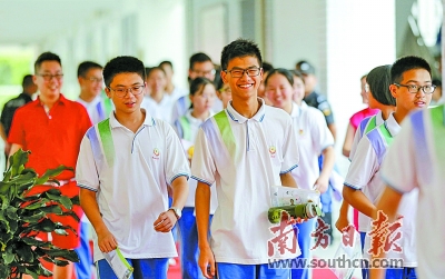 按照方案,中山的中考总分从明年起调整为600分。录取方面,今年设“A”“B”两类招生计划。图为去年中山华附考点,考生走进中考考场。 南方日报记者 叶志文 摄 |