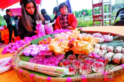 开幕当天,主办方还举行了首届荼薇花宴,吸引了不少亲子家庭来到现场,品尝荼薇特色菜和荼薇点心。据悉,在荼薇文化节期间,现场还可以开展亲子DIY荼薇凤凰蛋卷、荼薇酒、荼薇糖水榄等活动,体验小榄荼薇花制品加工技艺。
