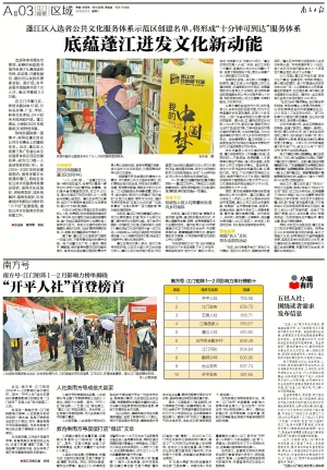蓬江区相关负责人表示,他们力争用两年时间,以区级大型公共文体设施为核心,镇级公共文体设施为枢纽,村级基层文体设施为基础的三级公共文化服务网络,推动固定设施、流动文化设施和数字文化阵地相结合,形成“十分钟可到达”的公共文化服务体系设施网络。