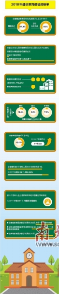 党的十九大报告强调“优先发展教育事业”。作为改革开放前沿阵地,广东坚持教育优先发展,建设教育强省:2018年,广东推进教育现代化先进县(市、区)达111个,覆盖率达87.4%,公办幼儿园和普惠性民办幼儿园占比达75.83%,博士、硕士、本专科招生计划增量和增幅均为历年之最。