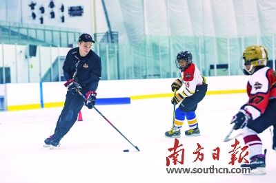 龙岗区充分发挥广东省冰雪运动训练基地的作用。图为青少年在深圳昆仑鸿星冰球馆里练习冰球。南方日报记者 朱洪波 摄 |