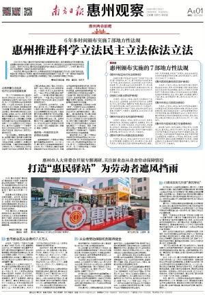 10月,惠州市首批“惠民驿站”建成启用,外卖员、快递员等新业态劳动者有了“歇脚地”;12月,仲恺高新区新业态行业工会联合会成立,惠州的新业态劳动者有了属于自己的第一个“家”……