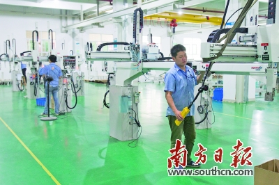 | 拓斯达是东莞首家从“新三板”转IPO的企业。图为拓斯达生产车间自动化生产线。 南方日报记者 孙俊杰 摄 |