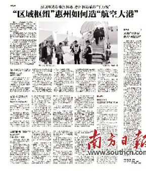 近期,南方日报推出不少关于惠州机场以及惠州空港建设的报道。《“区域枢纽”惠州如何造“航空大港”》的报道(见右图),引发广泛关注和热议。