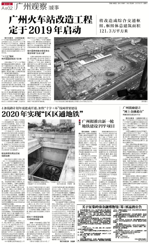 值得注意的是,《规划》中的广州市城市基础设施发展“十三五”规划重大项目表显示,广州火车站改造工程的建设起止年限为2019年到2022年,广州火车站将改造成枢纽内高铁站、综合交通枢纽,建设内容包括广州站站场工程、动车运用所工程、地方相关工程等,枢纽体总建筑面积121.3万平方米。广州东站改造的建设起止年限则为2018年至2020年,将结合广州枢纽布局,对现有广州东站进行扩能改造。