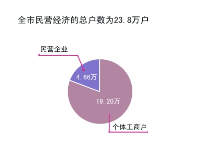 值得关注的是,按照工商部门的统计,2012年,全市民营经济的总户数为23.8万户,其中,民营企业4.66万户,个体工商户19.20万户,民企占比仅为19.53%。