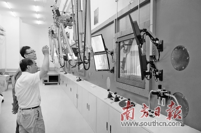 工程师维护处理散裂中子源装置设备。南方日报记者 孙俊杰 摄 |